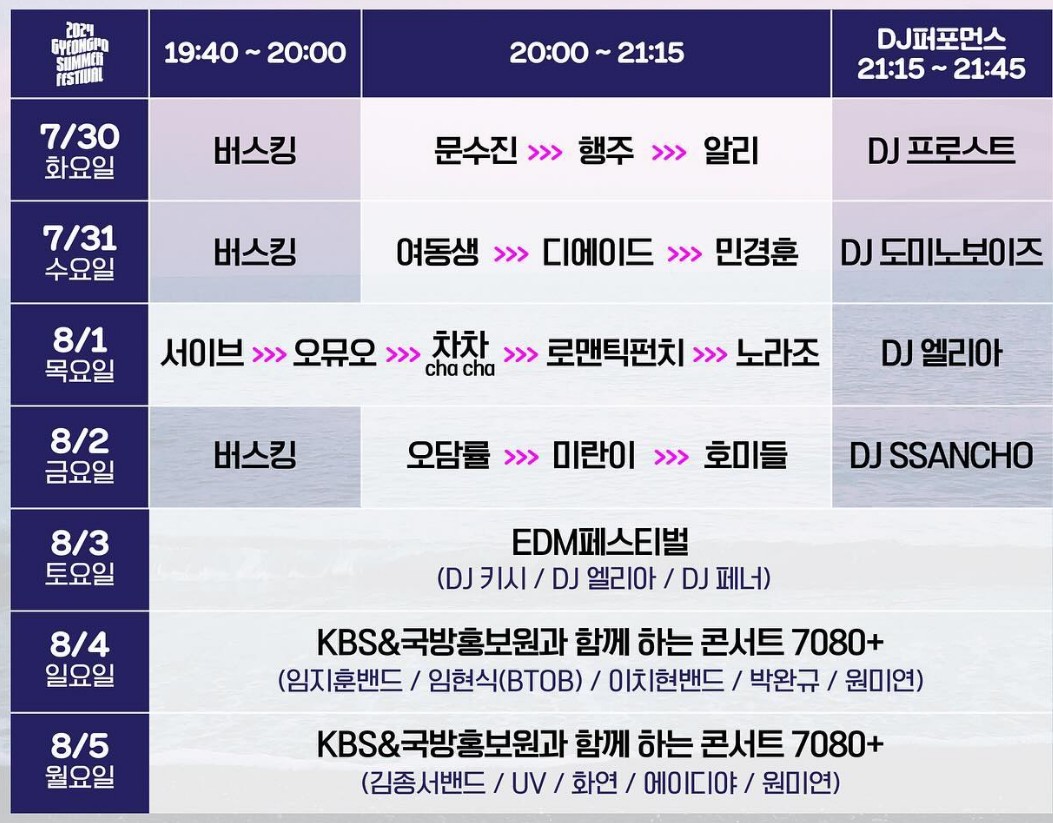 2024 경포썸머페스티벌 공연 일정과 가수 라인업을 알아보겠습니다.