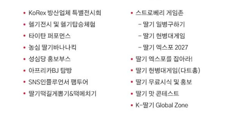 유명 업체들의 홍보 부스와 딸기와 관련된 재밌는 게임들이 운영됩니다.