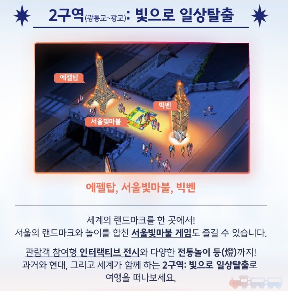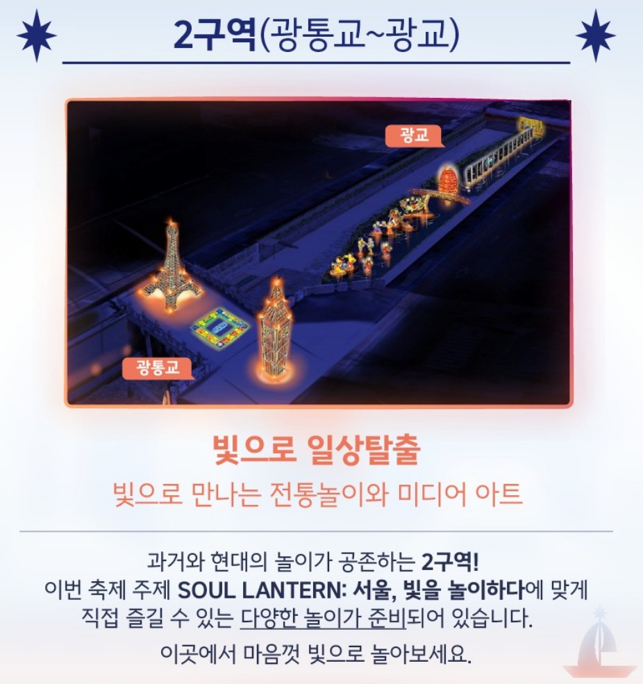 2024 서울 빛초롱 축제 행사가 2024년 12월 13일부터 2025년 1월 12일까지 진행됩니다. "서울, 빛을 놀이하다"라는 주제로 4개의 구역에서 200개가 넘는 조형물이 설치되어집니다. 다양한 체험프로그램도 준비되어 많은 관광객을 기다릴 것입니다.