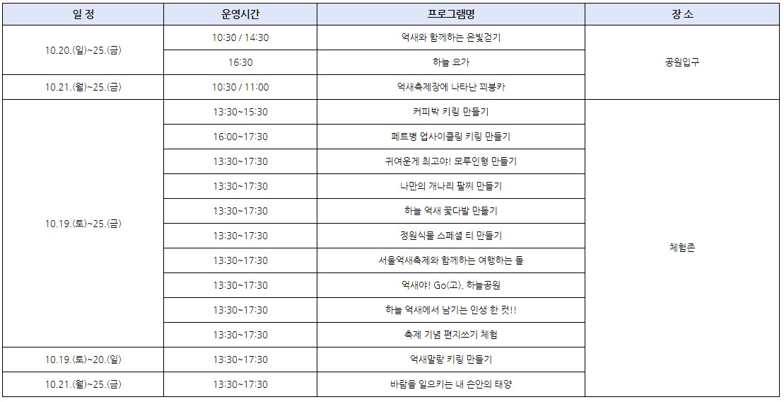 ▪ 10월 19일(토) ~ 10월 27일(일) 하늘공원 중앙무대