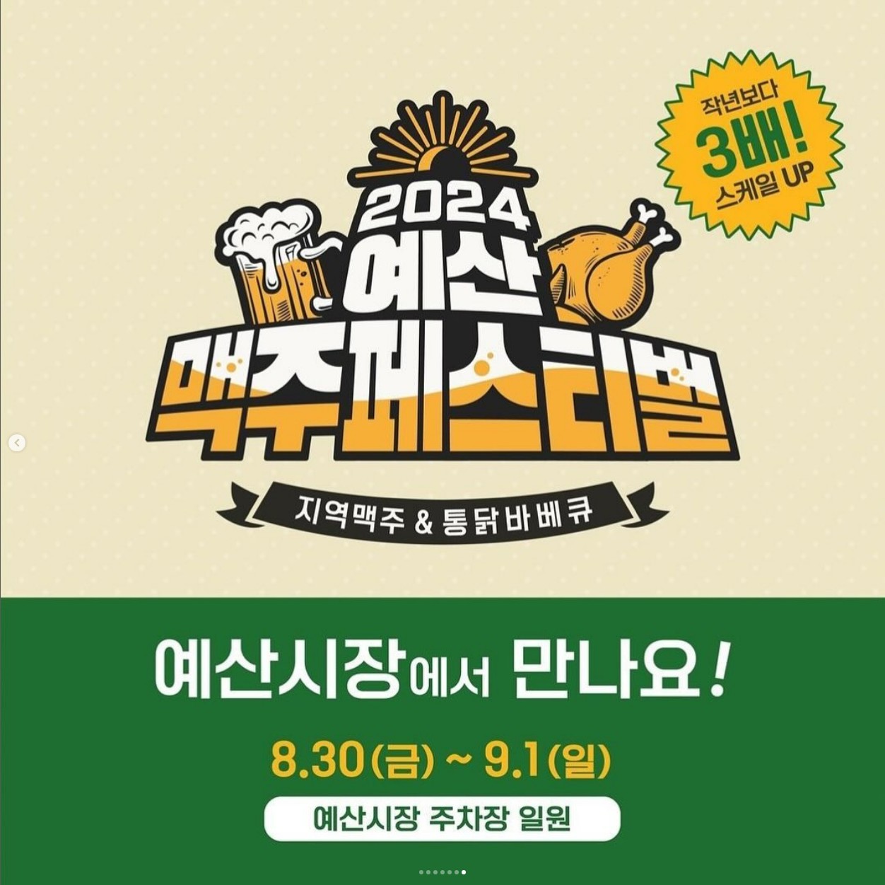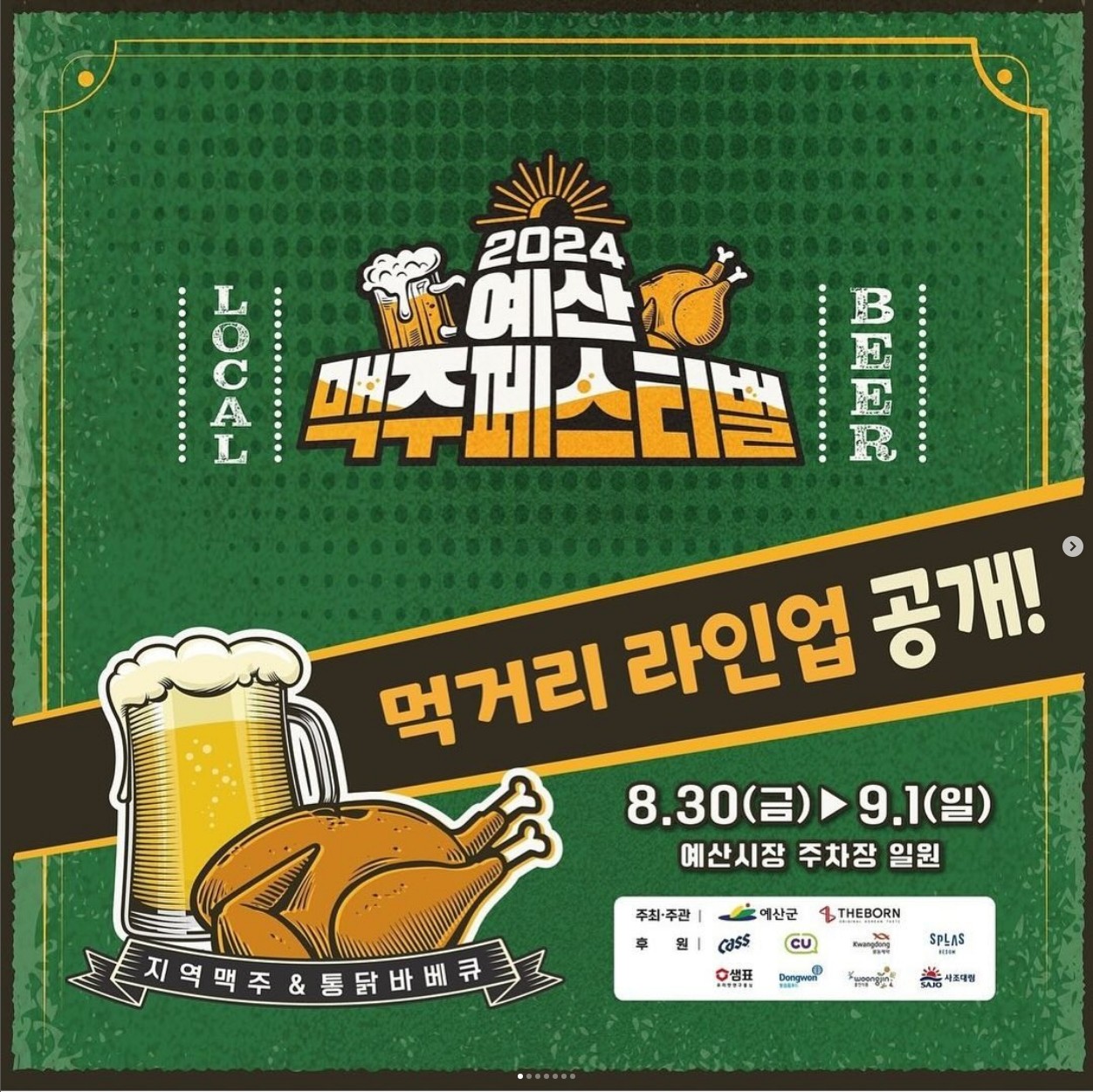 2024 예산 맥주페스티벌 행사가 8월 30일(금요일)부터 9월 1일(일요일)까지 예산시장 일원에서 펼쳐집니다. 백종원의 더본코리아와 함께 하는 행사로 다양한 닭요리와 맥주를 즐길 수 있게 준비되었습니다. 합리적인 가격으로 즐길 수 있는 이번 축제에 대해 알아보겠습니다.