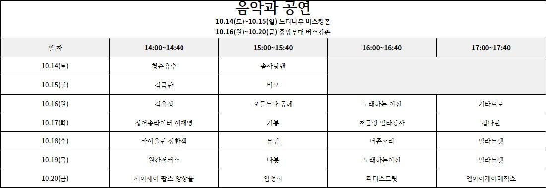10.15(일요일) ~ 10.20(금요일) 하늘공원 중앙무대