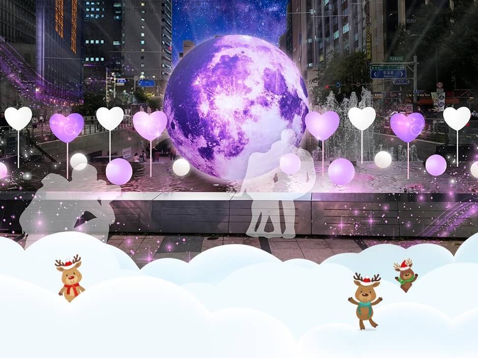 보라빛을 내는 대형 달 포토존과 하트 LED 조명들이 청계천을 물들입니다. 포토존으로 꾸몄으니 가족과 연인과 함께 추억을 남겨보세요