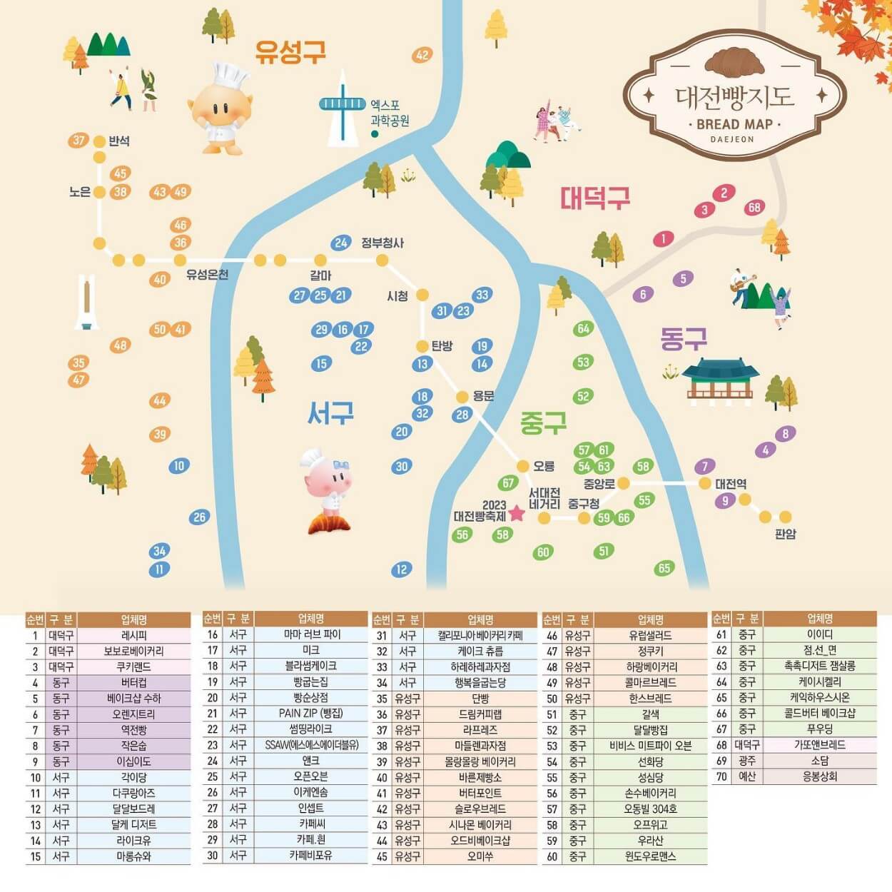 2023 대전 빵 축제가 2023년 10월 28일(토요일)부터 10월 29일(일요일)까지 서대전공원 일원에서 개최됩니다 전국 지역 맛있는 유명 빵집 70개 업체가 참여하는 이번 행사는 가수들의 축하공연과 다양한 빵을 시식할 수 있는 프로그램들이 구성되어 있습니다