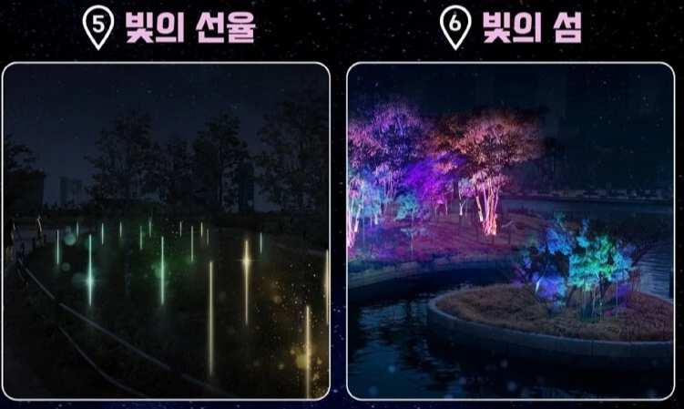 6. 센트럴파크 수로와 토끼섬 일대가 빛으로 화려하게 변했습니다