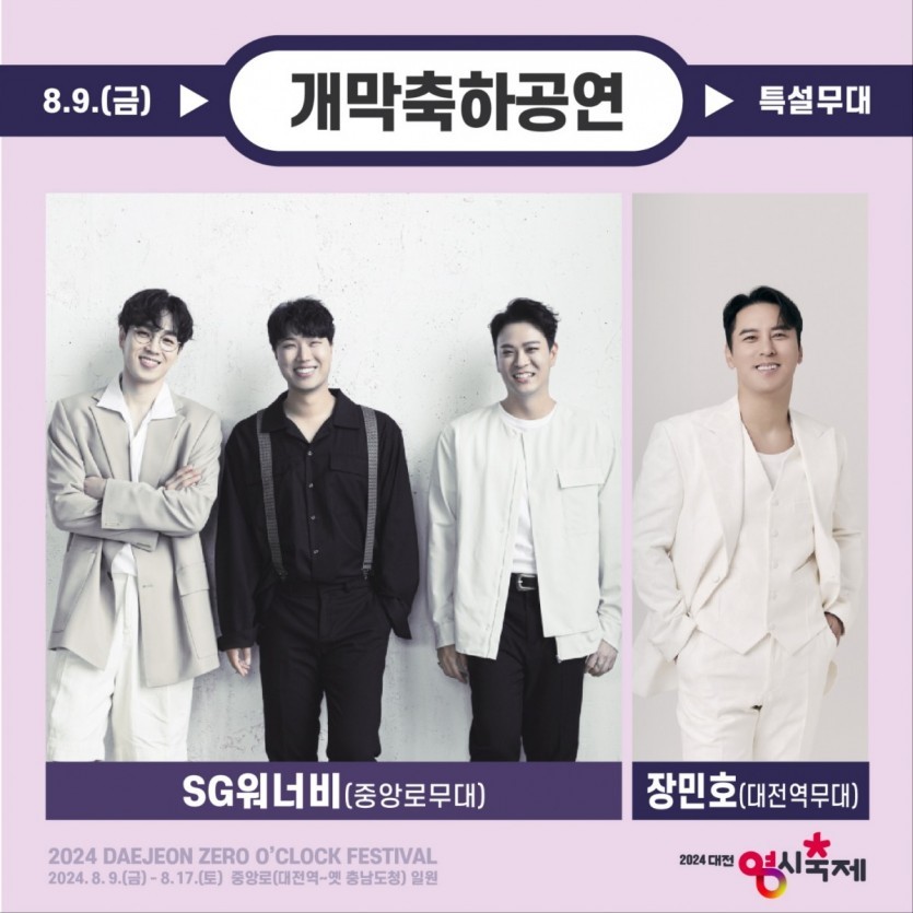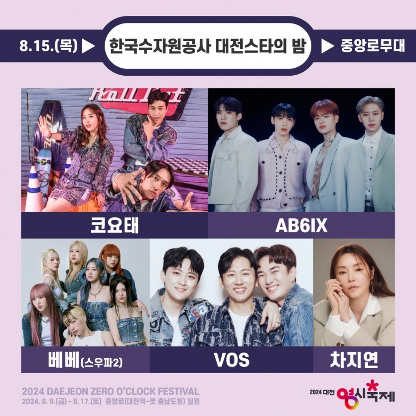 2024 대전 영시 축제가 8월 9일(금요일)부터 17일(토요일)까지 중앙로 일원에서 진행됩니다. 과거 미래 현재라는 시간 여행을 주제로 다양한 프로그램이 준비되었습니다. 특히 K팝과 트로트, 힙합을 대표하는 인기가수들의 공연이 행사 내내 진행됩니다.