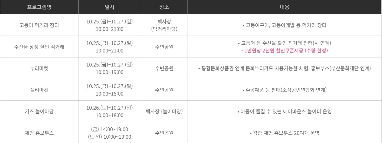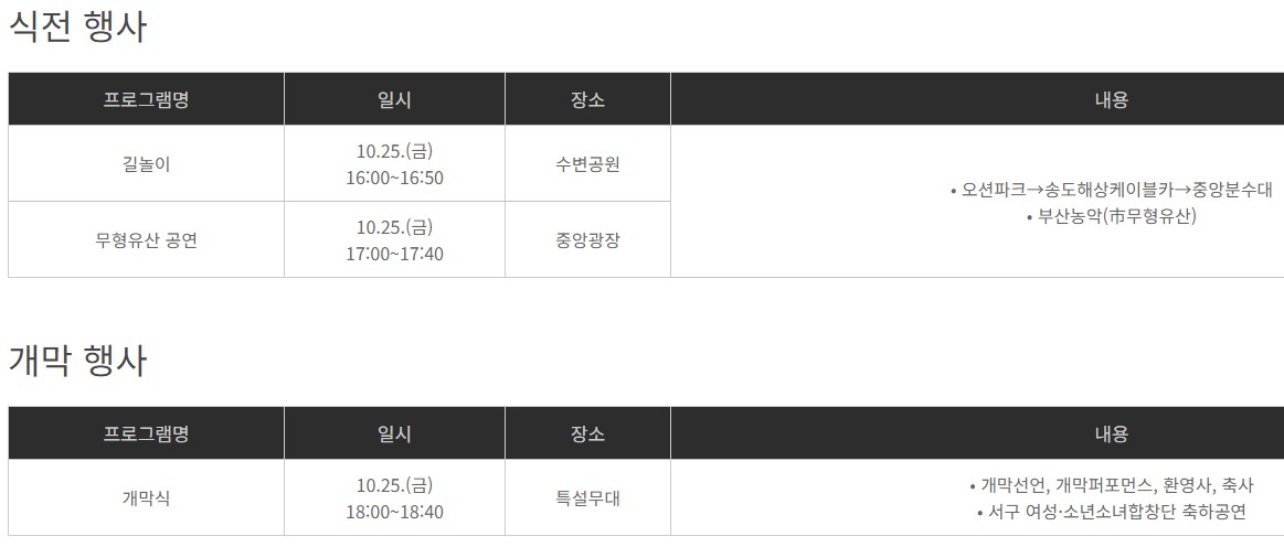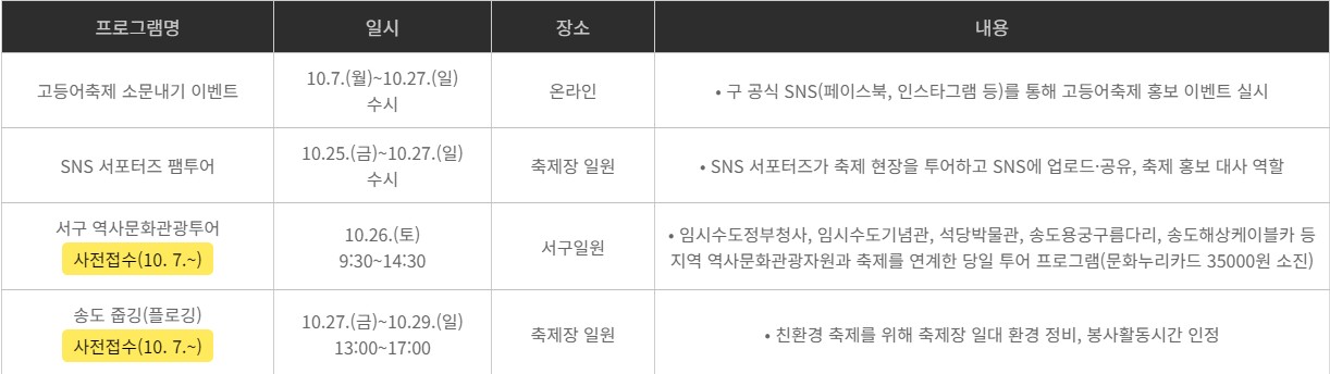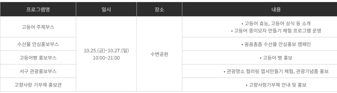 | 프로그램 | 일시 | 행사 내용 |