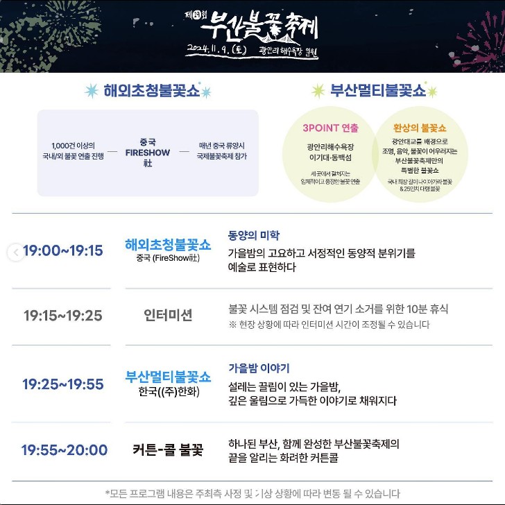 부산불꽃축제 2024 행사 일정 프로그램 시간