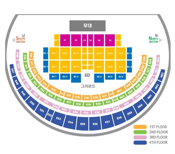 - 그라운드석 S, A, B구역은 단차가 없는 평지 좌석이며 의자가 설치됩니다